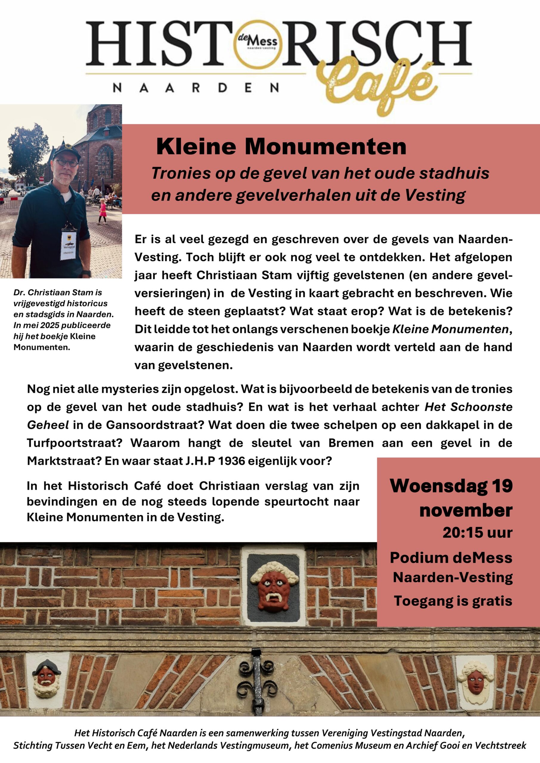 Lezing: Kleine monumenten. Tronies op de gevel van het oude stadhuis en andere gevelverhalen uit de Vesting.