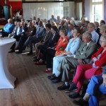 Na het welkom door voorzitter Jan Vollers en een openingswoord van burgemeester Henk Heijman van Bussum, besprak Hans Andriessen het ingewikkelde politieke spel waarin het neutrale Nederland verzeild was geraakt tussen de oorlogvoerende partijen Duitsland en Engeland. Marcus van der Heide ging in op de opvang van Belgische vluchtelingen aan de hand van de spraakmakende schrijver René de Clerq die in Bussum was neergestreken. Gastvrouw Nanny Blank gaf daarna een rondleiding op het Fort Werk IV. Na de lunch in de zonnige buitenlucht verspreidden deelnemers zich in de middag om per boot door de vestinggrachten van Naarden te varen, te fiets verdedigingswerken en houten huizen in het schootsveld te bekijken, per bus naar Doorn voor de speciale expositie over de Eerste Wereldoorlog in Museum Doorn en te voet voor een stadswandeling door Naarden na bezoek aan het Vestingmuseum.De succesvolle dag werd weer afgesloten in de Vernissage.