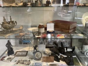 Claudette Baar, Karien Veerman en Corry Schoordijk van de Historische Kring Nederhorst den Berg maken van dit verzoek gebruik om de inhoud van de vitrines in de werkruimte te inventariseren, te fotograferen en te documenteren.